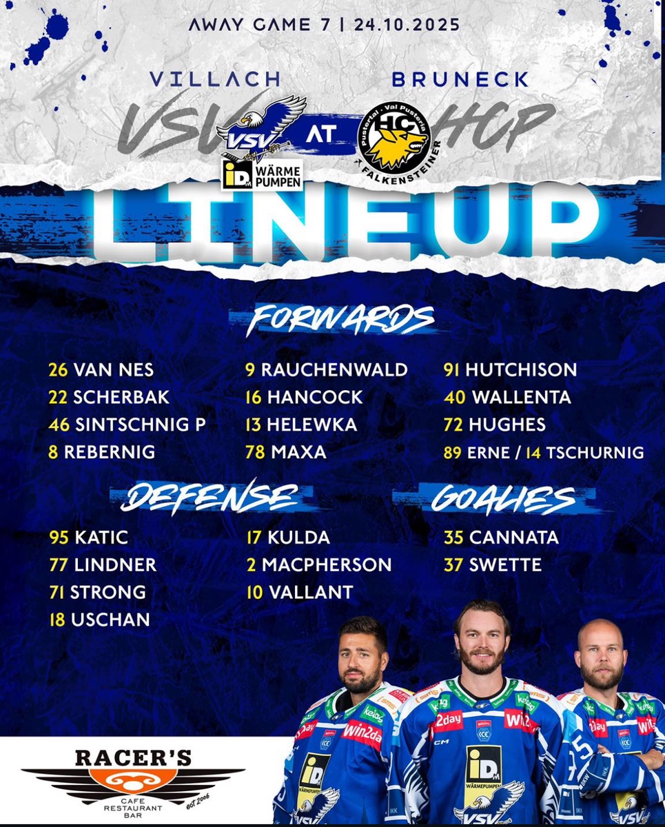 Tuomie kündigt Sintschnig bei Heleweka und Hughes an, wenn das so kommt muss ich da ehrlicherweise zugeben, dass ich mich getäuscht habe. Hätte nicht gedacht, dass er den Vorzug bei "vollem" Lineup bekommt. Kulda auch dabei. Wird sicher spannend, ich hoffe wir kriegen wieder ein ähnlich gutes Auswärtsspiel wie gegen Bozen hin, dann sind auch sicher Punkte möglich.