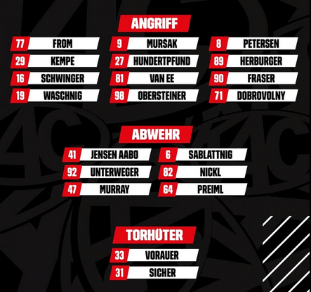 Nach der harten letzten Wochen hatten die Spieler auch genug Pause. Dank Anreise am Vortag gibt es auch von der Seite keine Ausreden. Bleibt zu hoffen, dass man mit Vorauer am zwei Gegentorschnitt anschließen kann. Besser gesagt, es bleibt Vorauer zu wünschen, dass er seine Fähigkeiten 60min konstant rüberbringt.