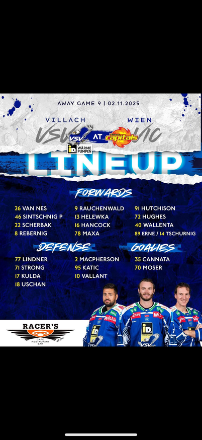 Wien gegen Villach immer ein gutes Duell. Ich bin gespannt wie sich die Mannschaft tun wird, und freu mich drauf den jungen Paul Sintschnig, spielen sehen zu können.