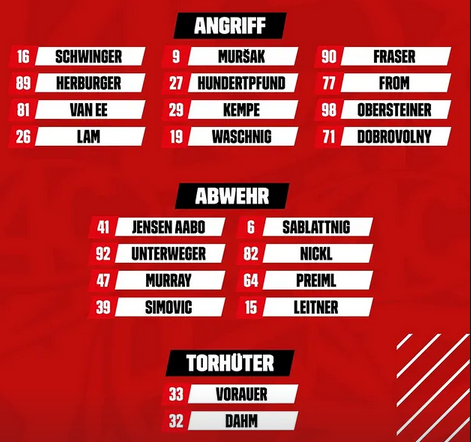 Nachdem heute mit Lennart Leitner ein 17jähriger Verteidiger im Lineup steht, wirds wohl auch hinten einen Ausfall geben