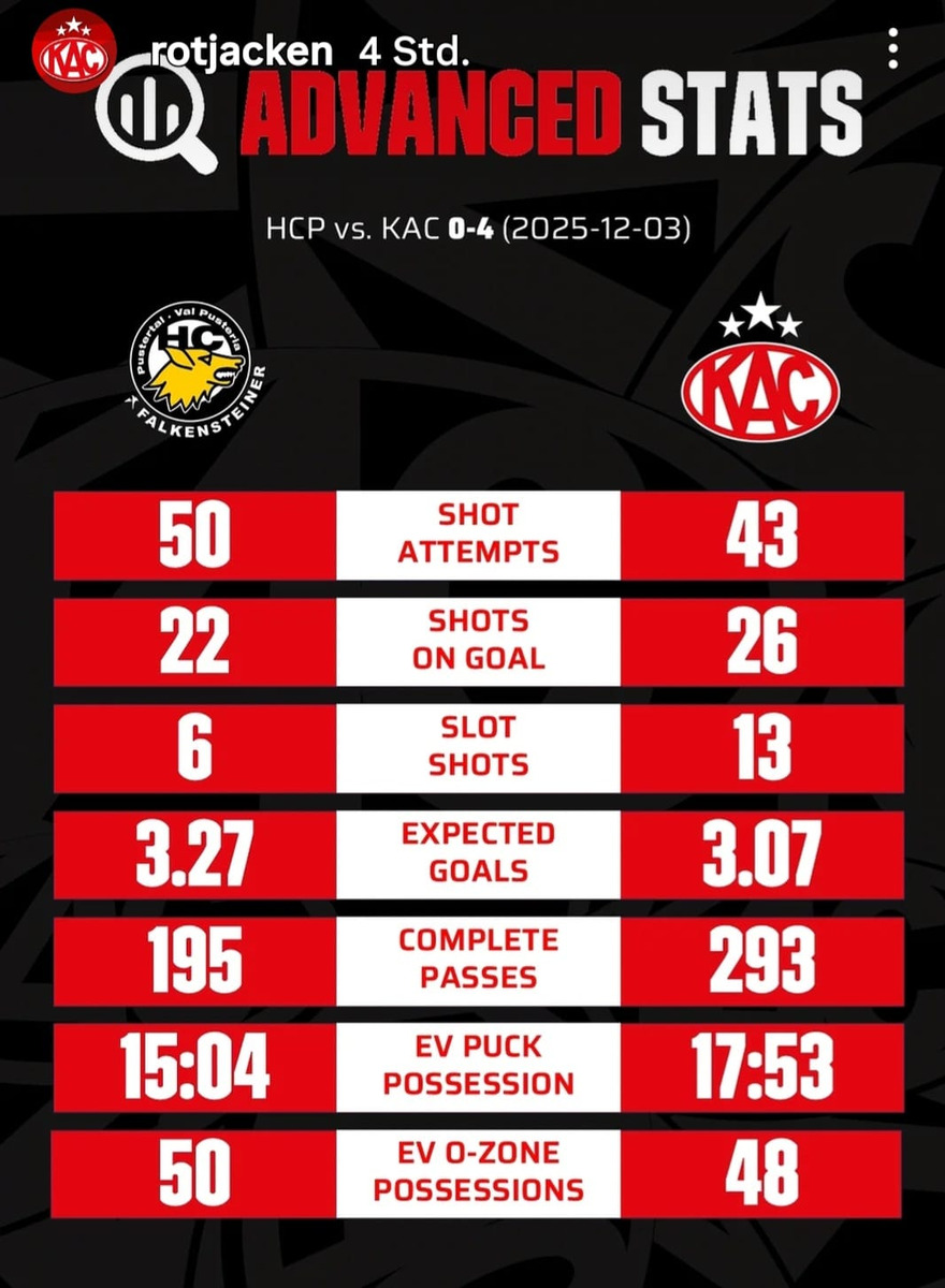 Von mir aus können sämtliche Spiele der restlichen Saison so verlaufen, dass die Gegner spielerisch (scheinbar) überlegen sind, der KAC jedoch mit Kontertoren schlußendlich das Match gewinnt. ![]()