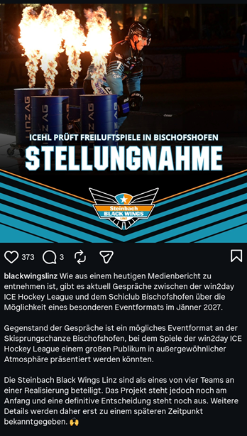 “Die win2day ICE Hockey League ist stets auf der Suche nach außergewöhnlichen Präsentationsformen für den Eishockeysport. Aktuell prüfen wir gemeinsam mit dem Skiclub Bischofshofen die Möglichkeit eines besonderen Events im Jänner 2027“, erklärte Gruber auf Nachfrage.
