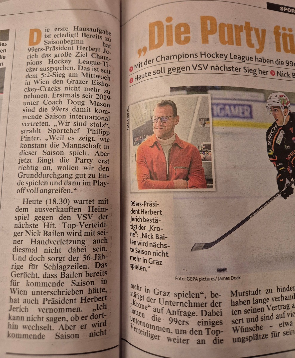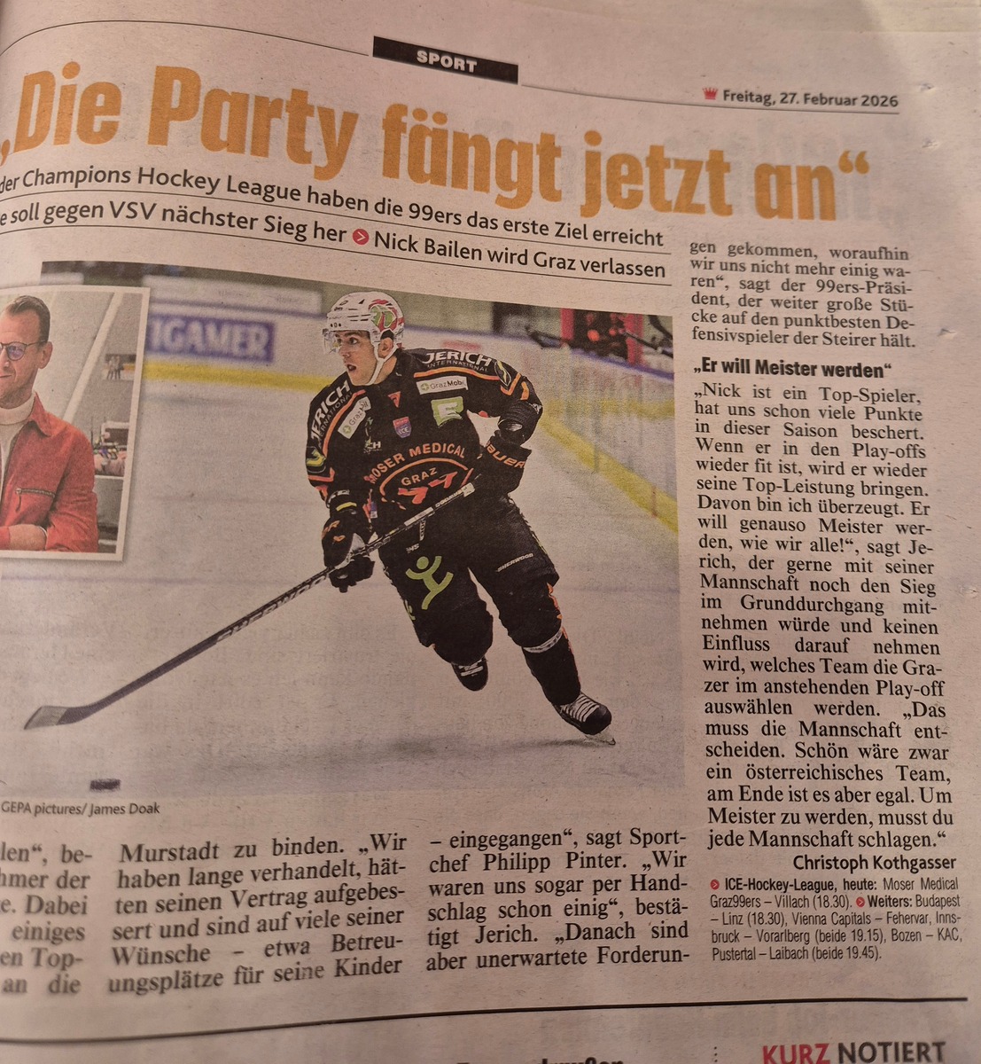 Während die 99ers derzeit sportlich auf Wolke sieben schweben und das zweite Mal in der Vereinsgeschichte die Qualifikation für die Champions Hockey ...