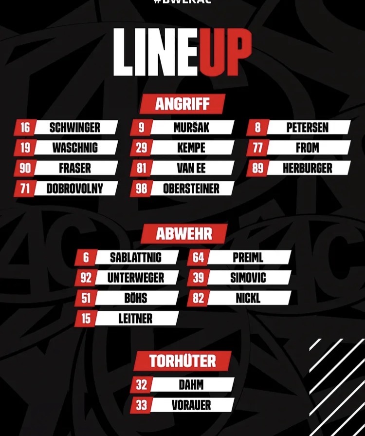 Vorne wie erwartet harte Kost, wird mit dem lineup mit Fokus auf defensive Arbeit wohl so bleiben.Linz Grad bissal Lucky mit dem Call. Wäre davor auf der anderen Seite auch gewesen laut Kommentator.
