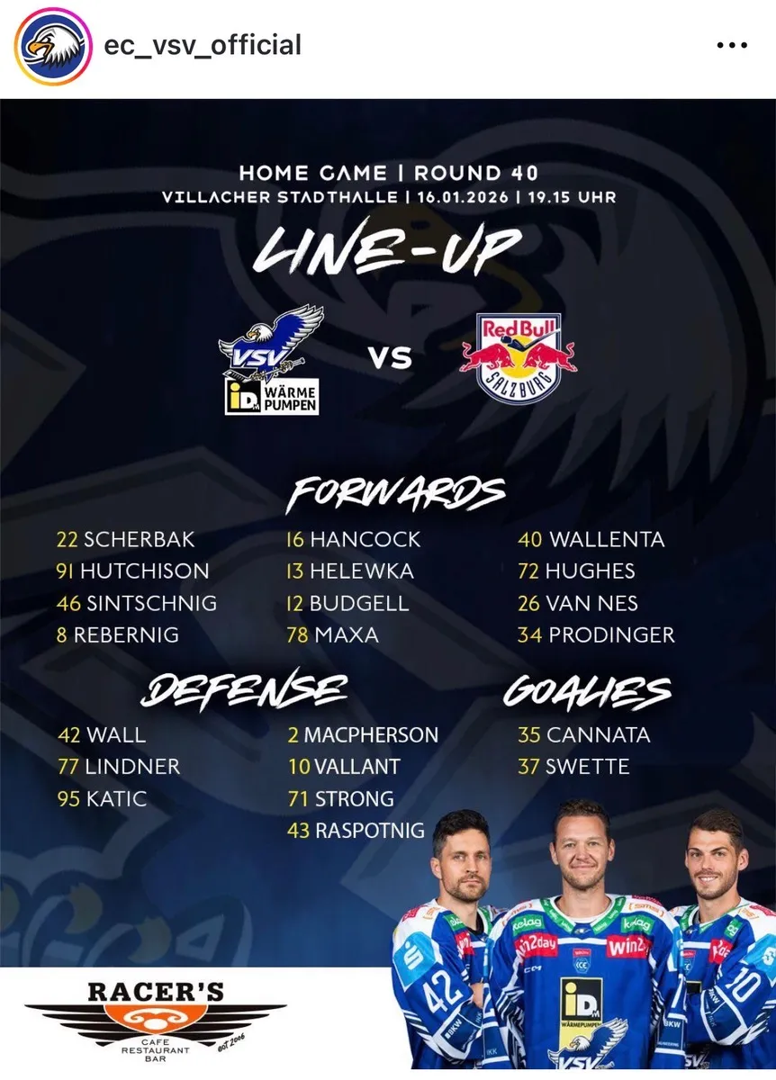 Runde 40 EC VSV gegen Red Bull Salzburg 16.1. 2026 19:15