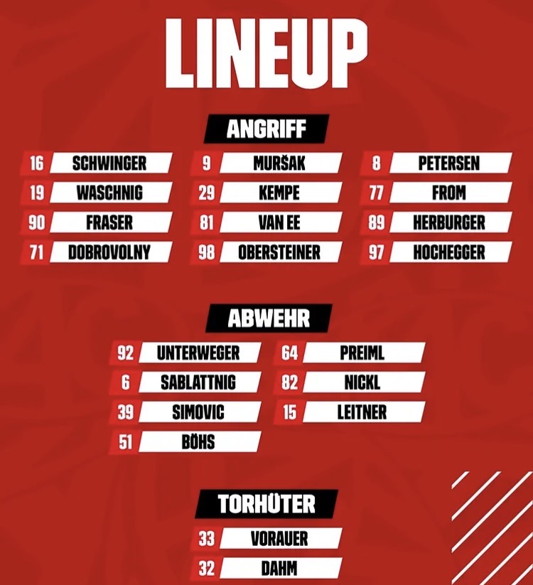Von der U20 hast noch Böhs, Leitner (sofern er wieder gesund ist). Außerdem Petritsch (wäre Debut) und Smolinkar (ist wieder zurück aus NA, keine Info ob der spielberechtigt ist).