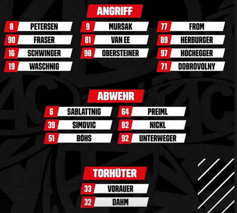 Bin gespannt wie die Linien aussehen, Herburger wird wohl fix Kempe ersetzen und dann evtl Obersteiner aufrücken und die Center rotieren oder Hochegger rückt auf und die Flügel rotieren in der 4.