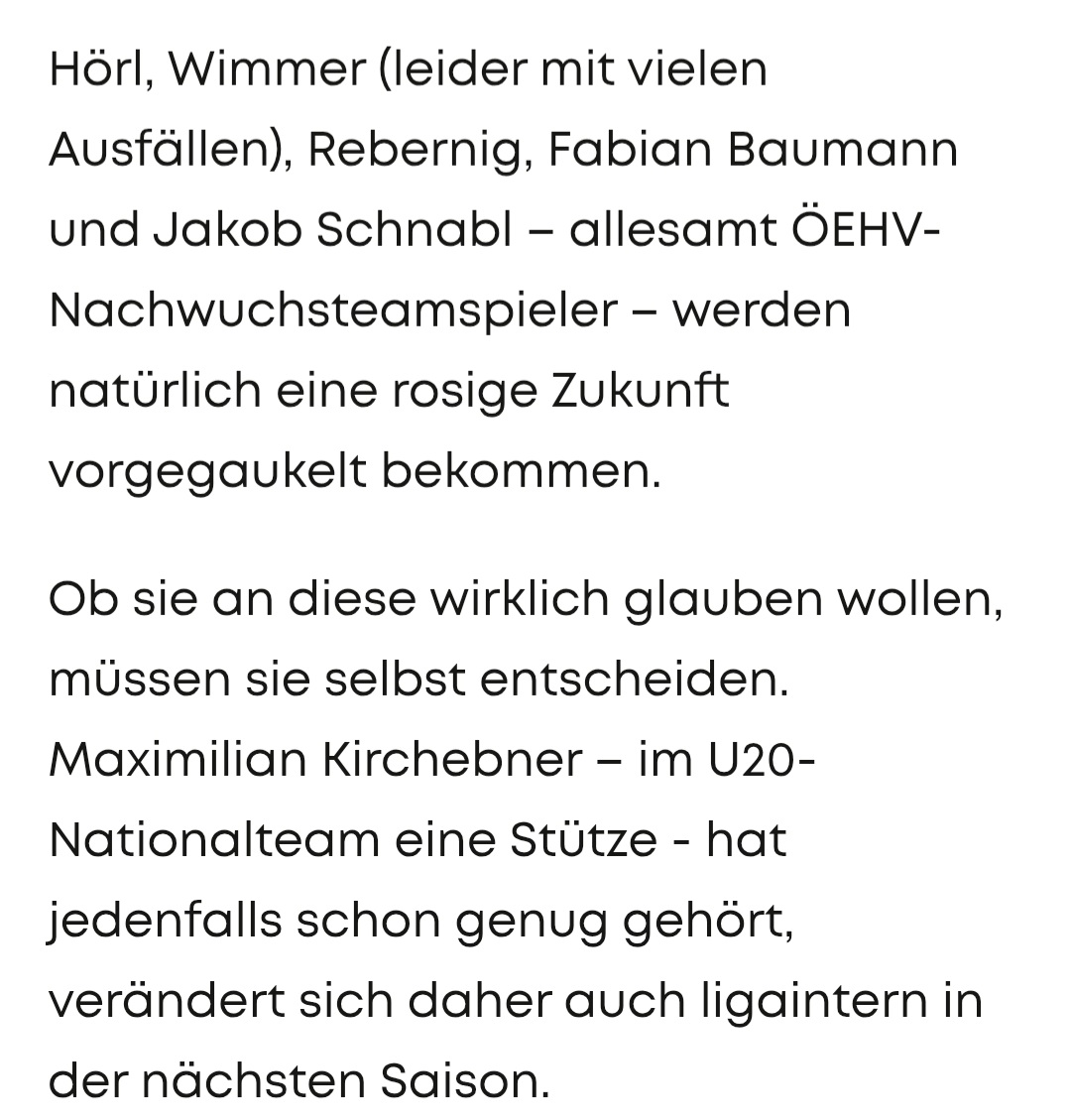 Ob sie an diese wirklich glauben wollen, müssen sie selbst entscheiden. Maximilian Kirchebner – im U20-Nationalteam eine Stütze - hat jedenfalls schon genug gehört, verändert sich daher auch ligaintern in der nächsten Saison."