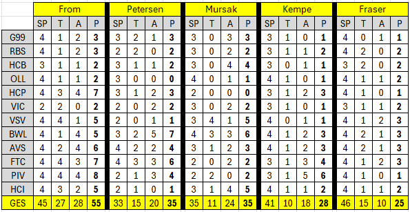 Was ja noch auffällt: Er hat nur 2mal (2x gegen VIC) gefehlt, auch ein Argument was absolut für From spricht. Wie gesagt er macht sicher nicht alles richtig am Eis, aber er hat einfach Qualitäten die man sonst nicht im Kader hat.
