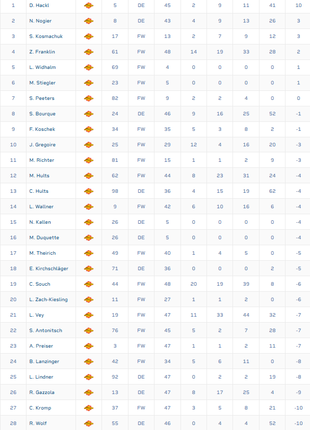 Ich häng mal einfach die ganze +/- Liste unserer Mannschaft an, interessante Lektüre...