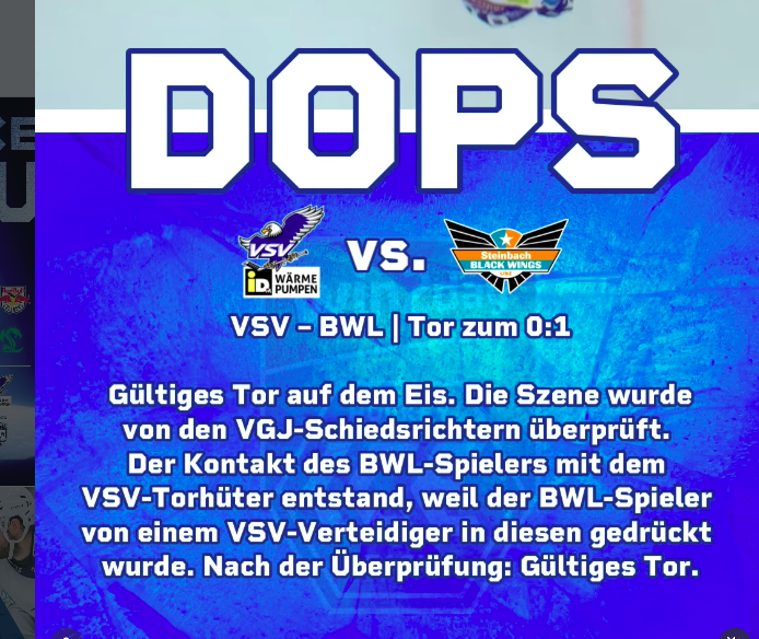 Äh hast du dir den Text dazu gelesen? Nach Review gültiges Tor, der Kontakt entstand, weil der VSV Verteidiger Gaffal in den Tormann geschoben hat! Und Schläge von Gaffal kann ich da in keiner Weise erkennen!
