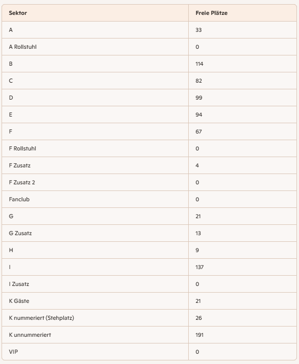 Aktuell wären (ohne Fanclub und VIP) noch 921 Plätze verfügbar.