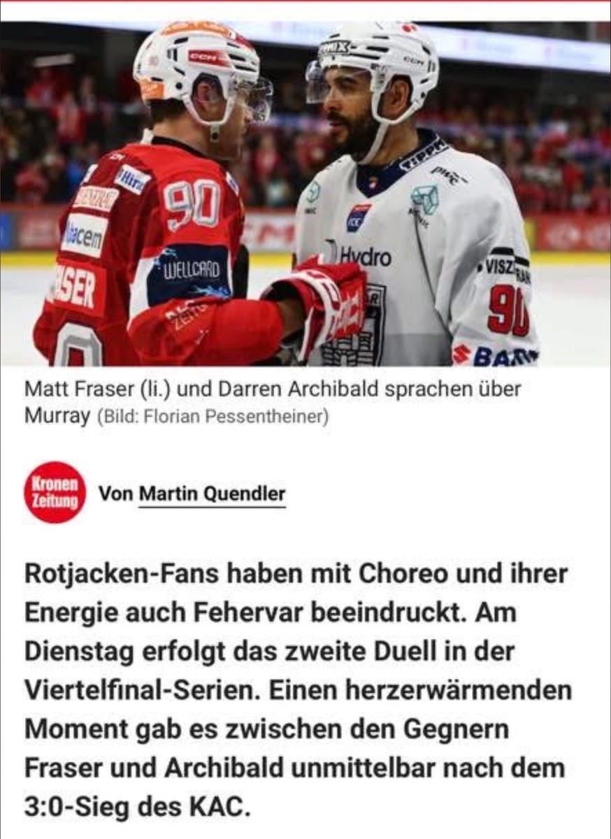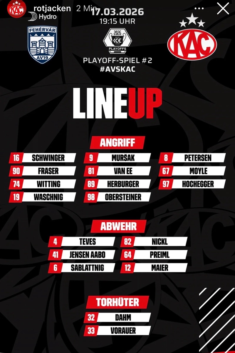 Die #Rotjacken müssen im zweiten Viertelfinalspiel heute Abend leider auf sechs Stammkräfte verzichten, neben den bereits bekannten fällt auch Clemens Unterweger aus, der in Ungarn über Nacht erkrankt ist. Wer die KACler kennt, weiß aber, dass sie kurze Lineups nicht aus der Ruhe bringen.