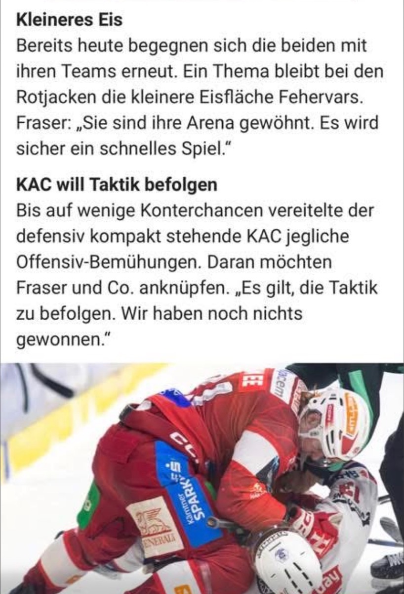 Die Klasse spricht mMn eindeutig für den KAC, kann sein, dass sie heute nicht gewinnen,
