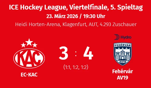 VF 5 EC KAC vs FEHEVAR AV19 23.03.2026 19:30 Live auf ORF Sport Plus