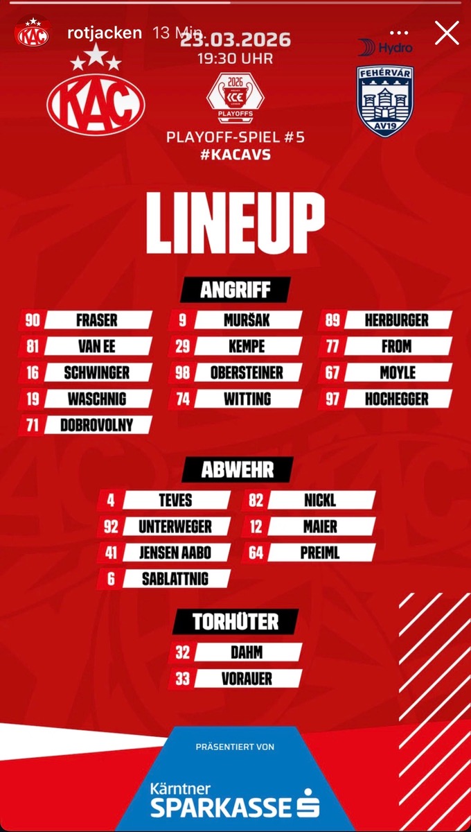 Unterweger ist sooo enorm wichtig. Mit Ausnahme von Murray voller Kader - keine Ausreden mehr, über Fehervar musst drüberkommen, aus!