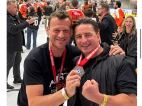 ... sogar ich war bei der letzten Meisterschaft in Linz nach dem offiziellen Teil mit dem Team und den Fans am Eis.