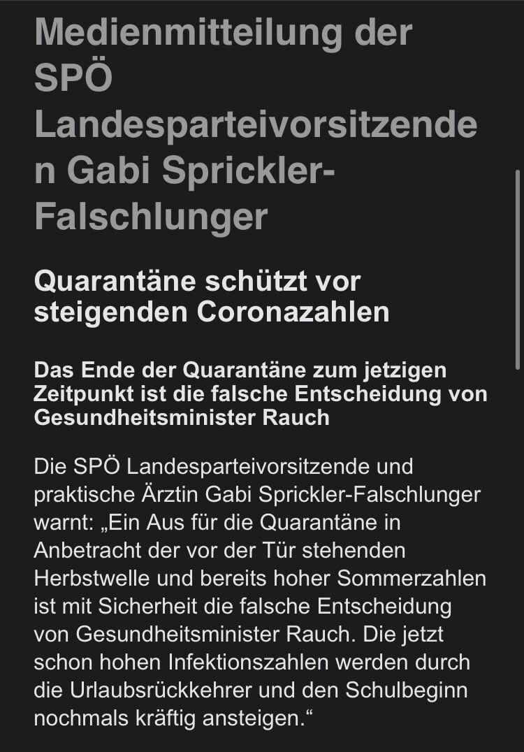 Und genau da liegt das Problem.Du bleibst zu Hause, andere sagen ist eh nur ein Schnupfen und gehen raus. Oder noch schlimmer testen nicht, weil sie genau wissen, dass sie Corona haben, aber den Urlaub/die Party möchte ich doch nicht verpassen! Das ist dann die vielgerühmte Eigenverantwortung, die bei uns so gar nicht funktioniert.