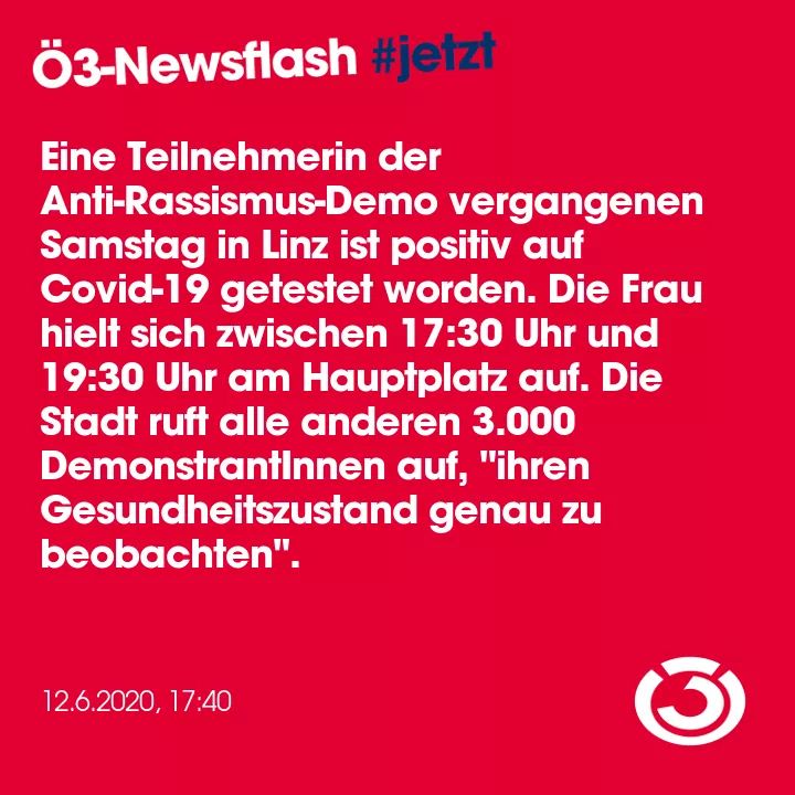 Weil jemand anderer in ihrem Umfeld an Covid-19 erkrankt war, wurde sie im Zuge des Kontaktpersonenmanagements untersucht. Dabei wurde festgestellt, dass sie ebenfalls infiziert ist. Während der Demo trug die junge Frau laut den Erhebungen der Gesundheitsbehörden die ganze Zeit eine Mund-Nasen-Schutzmaske. Sie habe zwar leichte Erkältungssymptome verspürt, aber zu diesem Zeitpunkt keine Veranlassung gehabt, einen Zusammenhang mit dem Coronavirus herzustellen.