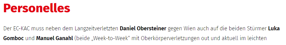 Und das wiederum erfordert Stabilität in der neutralen Zone. Hier ziehen noch nicht alle Spieler an einem Strang, das führt zu Turnovers. Später in der Saison, wenn die Gegner den KAC analysiert haben, könnte dies die Achillesferse der Rotjacken werden - sofern das System nicht ständig adaptiert wird.