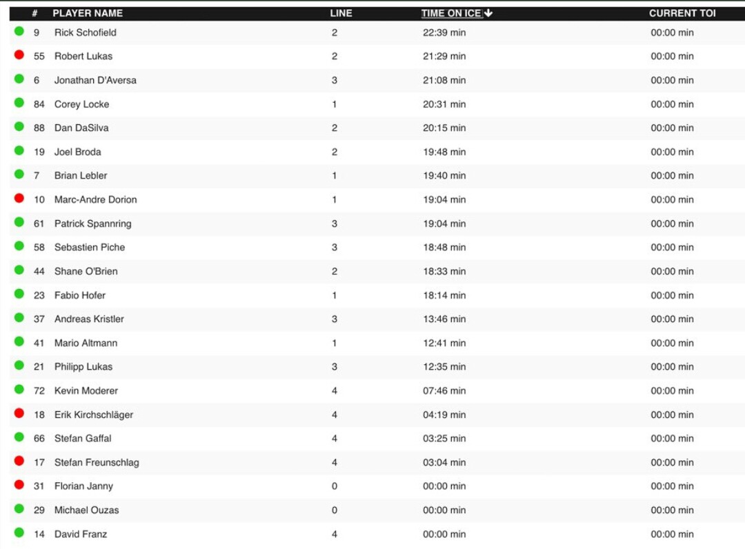 Grundsätzlich möchte ich hier auch darauf hinweisen, dass es mMn. falsch ist, nicht mit 4 ausgeglichenen Linien zu spielen. Dafür wurde Daum kritisiert und auch Ward tendiert dazu mit 2,5 Linien zu spielen, was den ausgebrannten Spielern spätestens im Playoff zum Verhängnis werden kann. Warum also nicht in jedem Spiel Österreicher next to Canadians einsetzen und allen das gleiche Maß an Eiszeit zugestehen?