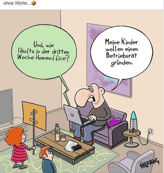 Der Vorteil an "home office", man teilt sich endlich Haushalt und Erziehung.