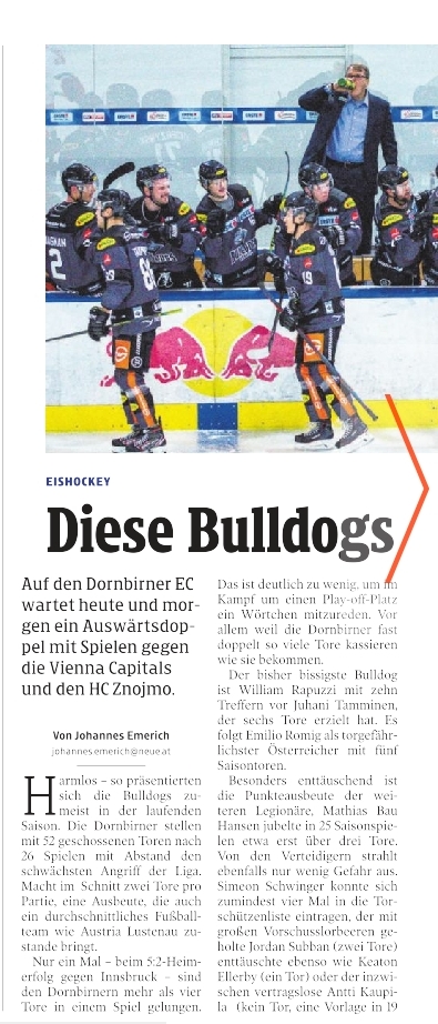 Also ich weiß nicht so recht... seit 2 Jahren lese ich hier was Dornbirn für ein Pech hat bezüglich der Verletzungen. Kann mich täuschen, hab aber nicht das Gefühl, dass der DEC mehr verletzte Spieler hat als andere Vereine.