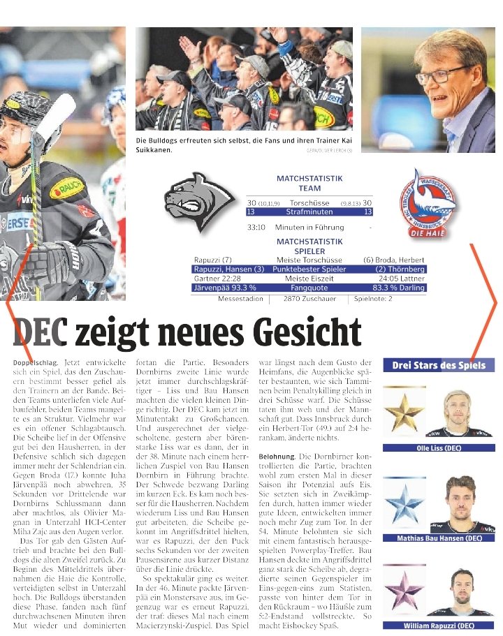 Solche Spiele können ein "turning point" im Saisonverlauf sein, was ich mir für den DEC wünschen würde.