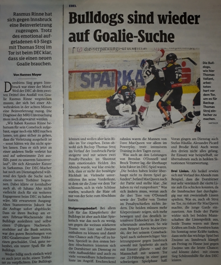 Nachdenklich stimmt mich wie schwer sich die Mannschaft gegen überraschend schwache Innsbrucker getan hat. Und das Powerplay war eine Augenweide!