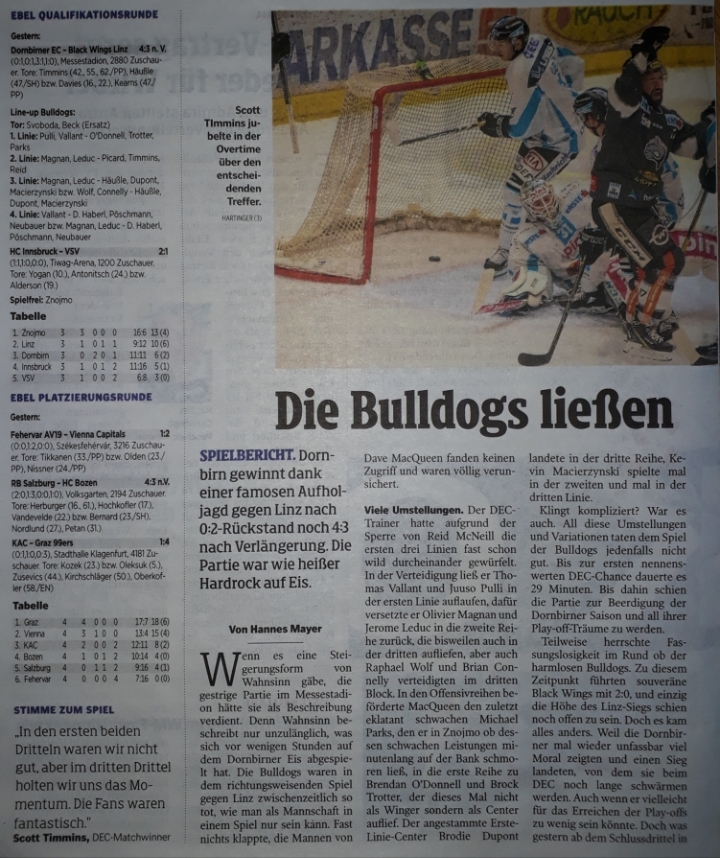 Freut mich dass die Bulldogs erfolgreich in die Quali gestartet sind und dass das Spiel für Stroj noch ein gutes Ende nahm.