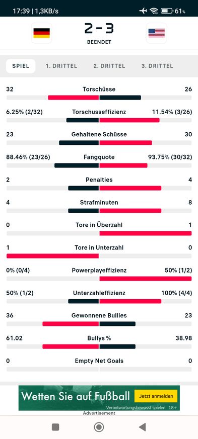 Kahun und Peterka saustark, FO geht geschätzt 80% an GER, US kontert fast nur mit Härte und eben starkem PP...
