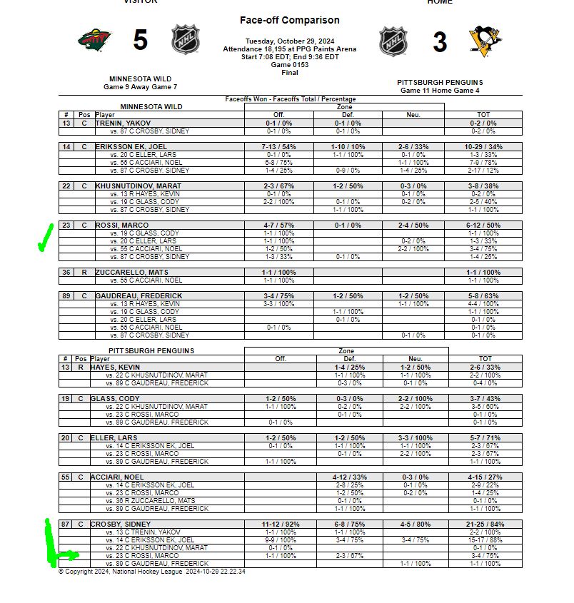 FO Quote von 50% ist ok und gegen Crosby haben alle Wild Spieler nicht gut ausgesehen.