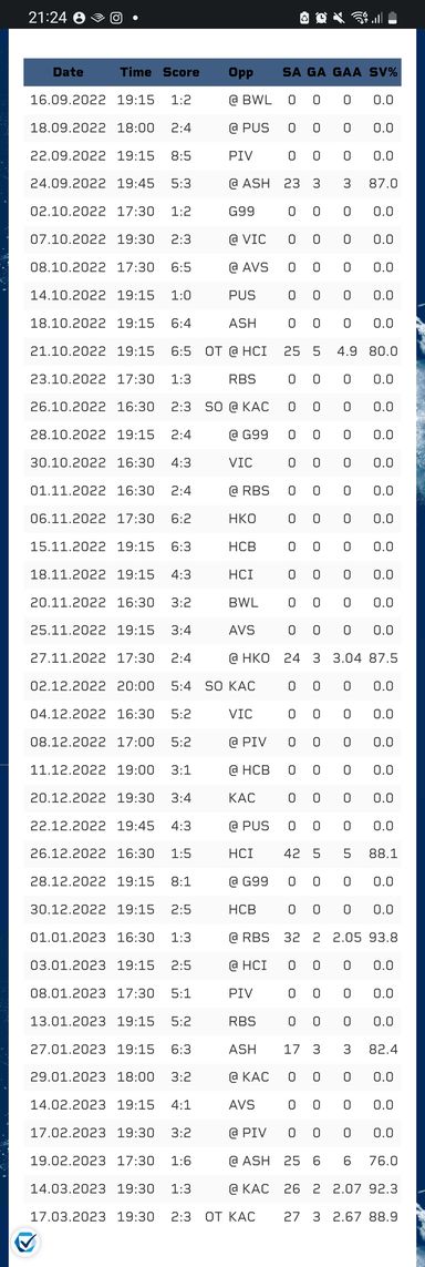 Saisonstart gegen Pustertal und Linz verpennt, dass dann den 1er gegen die Pioneer bringst ist glaub ich durchwegs ok. Dann erste Partie von Ali, da machte er wirklich keine gute Figur in Asiago (da war der Druck zu performen wohl noch nicht ganz so hoch). Dann verlierst wieder 2 mal und musst fast gegen die Nachzügler aus Südtirol Punkten, mMn. auch wieder einigermaßen verständlich da Lamo zu bringen. Dann kriegt Ali wieder sein Partie, ganz klar eine undankbare gegen die offensivstarken Haie, aber gerade da hätte er halt Null Druck gehabt, aber überzeugend war das auch nicht. Dann kam wohl die Phase wo Daum ein biserl Nachdruck spürte, weil man sich mehr erwartet hat und Ali hat leider lange keine Partie bekommen, die Laibach Partie dann, war aber wieder nicht gut. Das kannst so weiterführen, bis dann halt einmal diese Salzburg Partie kam, ich lehn mich mal weit aus dem Fenster und behaupte, wenn er das Spiel gegen Asiago in Saisonspiel 4 überzeugend macht, dann kriegt er auch mehr Starts....