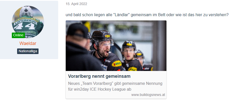Und ich schreibe es dir noch einmal, damit du's endlich kapierst: Du wohnst in Oberösterreich (nehme ich mal an), du hast keine Ahnung von der Vorarlberger Eishockeykultur, etc. Aus der Ferne urteilen ist schwer, wenn man überhaupt kein Hintergrundwissen hat. Also schreib' dir das endlich hinter die Ohren!
