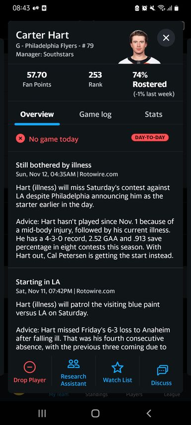 - Geht in seine 2. Profisaison, Roy strauchelt, er bekommt die Starts, überzeugt laufend und hat bisher ein Spiel (vollständig) mit <90% SVS abgeschlossen. Zugegebenermaßen in einem guten Team, trotzdem überzeugt er halt auch konstant mit guten Leistungen!