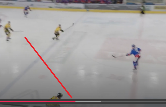 Das 3:5 war eine durchaus sehenswerte Aktion der Caps. Unsere Linie ist deutlich zu offensiv positionert (bzw. alle mit Zug zum Tor am Weg). Lediglich Kerber steht an der blauen. Der Pass zur Mitte landet direkt beim Spieler der Caps, der sofort schaltet und auf den Konter geht.