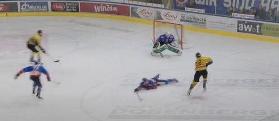 Führt zu dieser Situation. Der Puck rutscht am Ende unter McCollum durch.