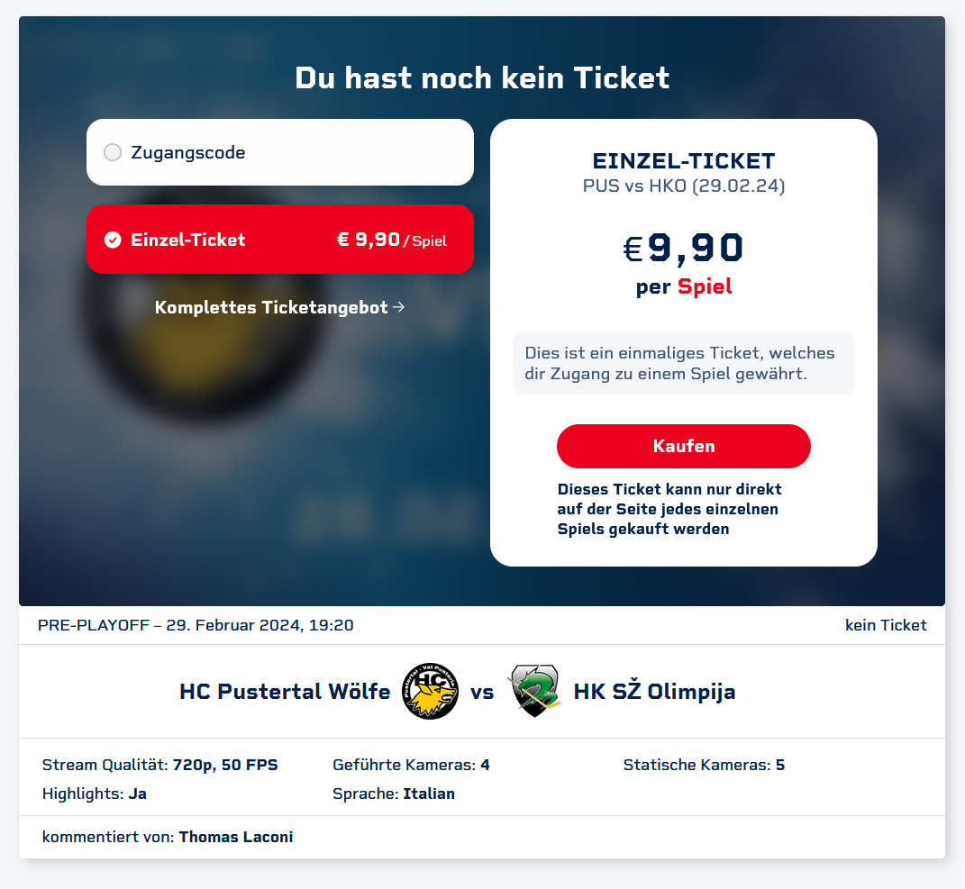 Auch wenn Puls24 nach der Saison aussteigt, sollte man diese Spielzeit noch mit vollem Ernst fertig machen. So ein wichtiges Entscheidungsspiel sollte schon im TV und für unsere Südtiroler Freunde zusätzlich im stream ohne Geoblocking zu sehen sein.
