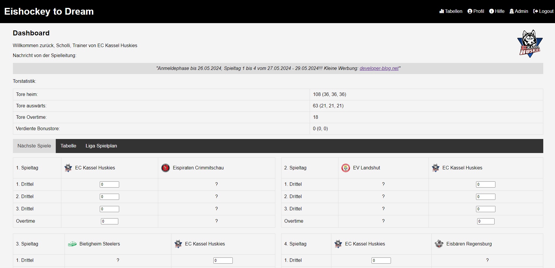 Wir haben nun den Eishockey-Torkontingent-Manager "Eishockey to Dream" online gebracht und das in einer Art, die es so noch nicht gegeben hatte in der Vergangenheit.