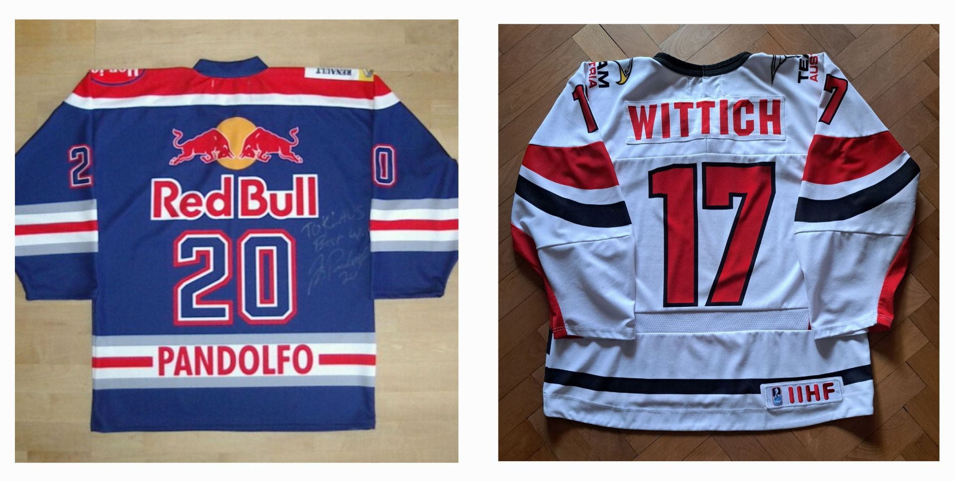 1. NHL-Jerseys der Österreicher, alles Authentics, teils signiert, teils mit Patches