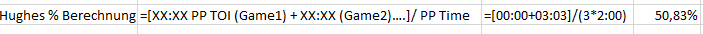 Ich weiß nur eben nicht genau wie die AVG PP TOI gerechnet wird. mit den PP Möglichkeiten oder mit den GP. Anbei ein Beispiel: