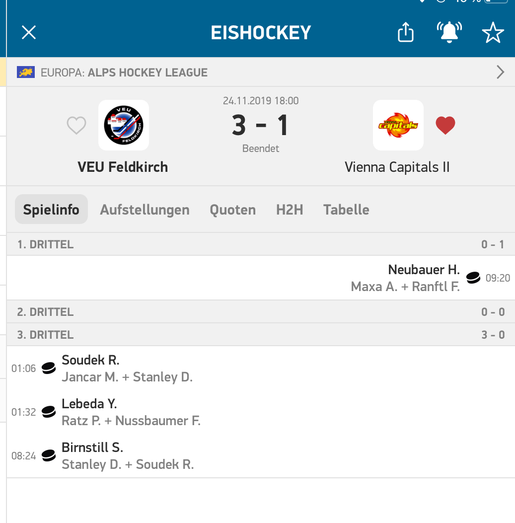 Ein Doppelschlag innerhalb von 26 sec zu Beginn des Schlussdrittels hat quasi das Spiel zugunsten von Feldkirch entschieden. 😢