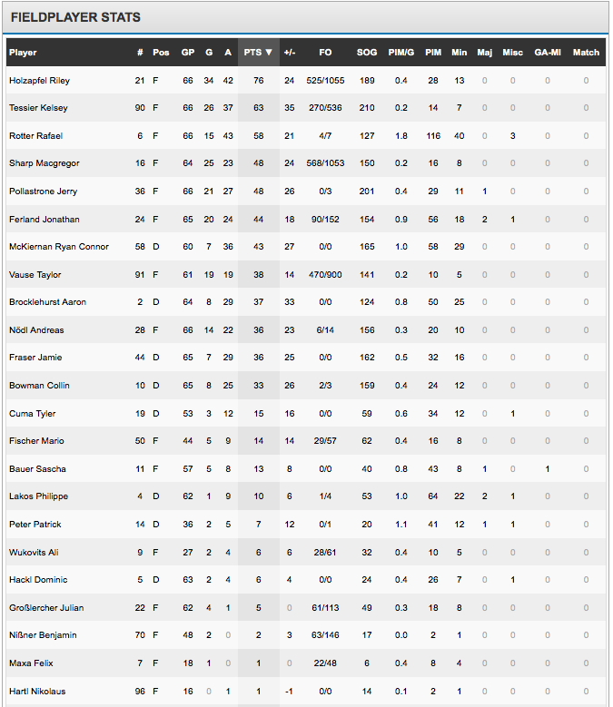 Heuer Entscheidungen zu treffen wird so oder so eine schwierige Angelegenheit, v.a. wenn man evtl. noch mit mehr Österreichern spielen will. Statsmäßig sind alle nah beieinander (siehe Anhang) und auch vom Spielerischen her ist keiner abgefallen. Sharp der vl. nicht der auffälligste im Team ist, hat am 3. meisten Tore geschossen. Ferland und Sharp beide mehr Punkte gesammelt als ein auffälliger Vause zB. (ich weiß, es sind EBEL-Stats und generell sind Stats nicht alles)