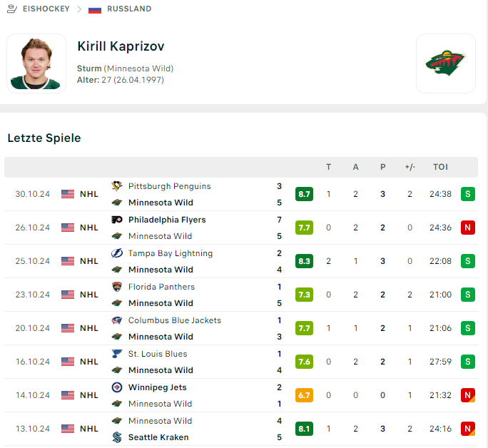 FO Quote von 50% ist ok und gegen Crosby haben alle Wild Spieler nicht gut ausgesehen.