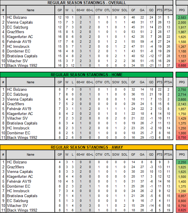 Hab mir mal den Spaß gemacht und den Punkteschnitt hochgerechnet. Wenn alles so bleibt wie's jetzt ist, ist man mit 31 Punkte am Ende vom GD Letzter, mit einem Abstand von 16 Punkte auf den Vorletzten, dem VSV. Und vom Top 5 Platz wär man sportliche 41 (!) Punkte auf den KAC entfernt.